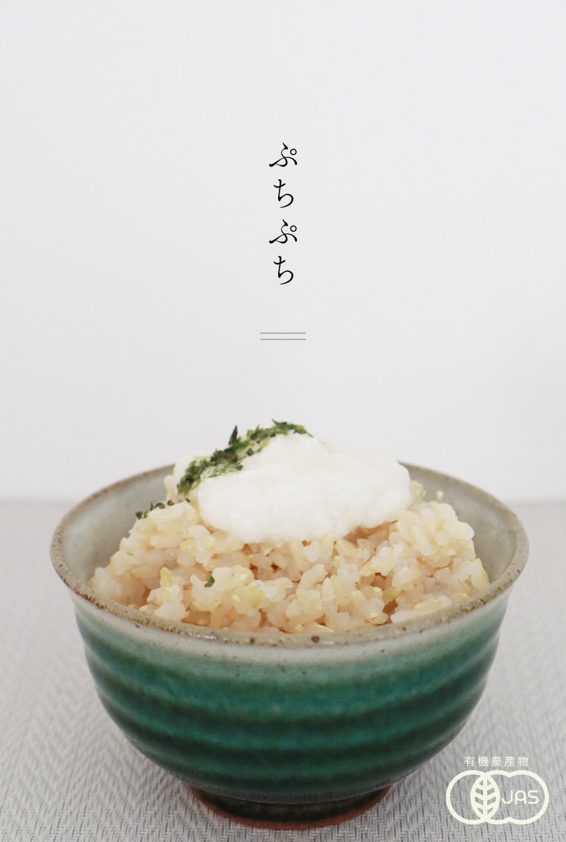 大粒でハリがあり、プチプチと弾けるような玄米らしい噛み心地を楽しむことができます。歯を入れると徐々にしっとりと粘り出し、香ばしくまろやかな旨味がじんわりと口に広がります。飲み込んだ後も口にまったりとした余韻を楽しむことができます。